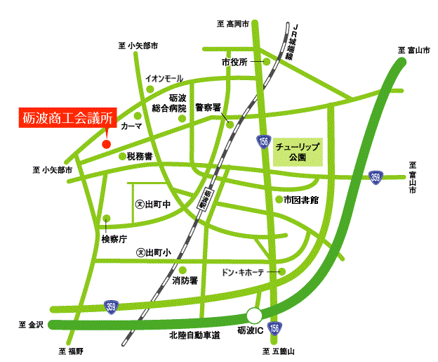 | 東京から | 関越・北陸自動車道〜砺波IC | 約6時間 |