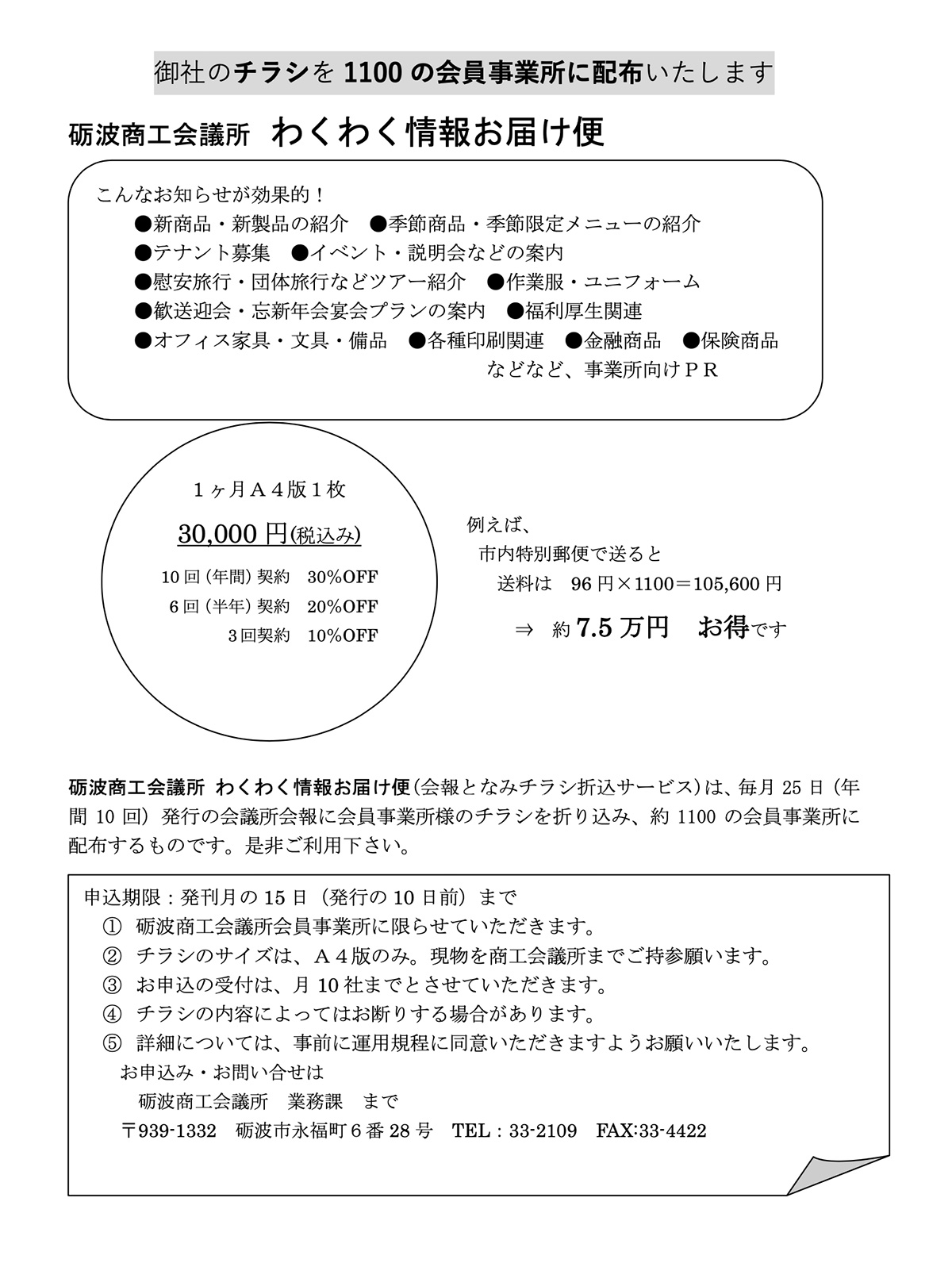 ・会報チラシ折込サービス「わくわく情報お届け便」が利用できます。