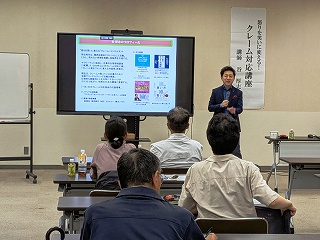 令和7年10月14日、砺波商工会議所大ホールで「クレーム対応講座」が開催されました。会員事業所の皆さまが「怒り」を「笑い」に変える対応術について学びました。