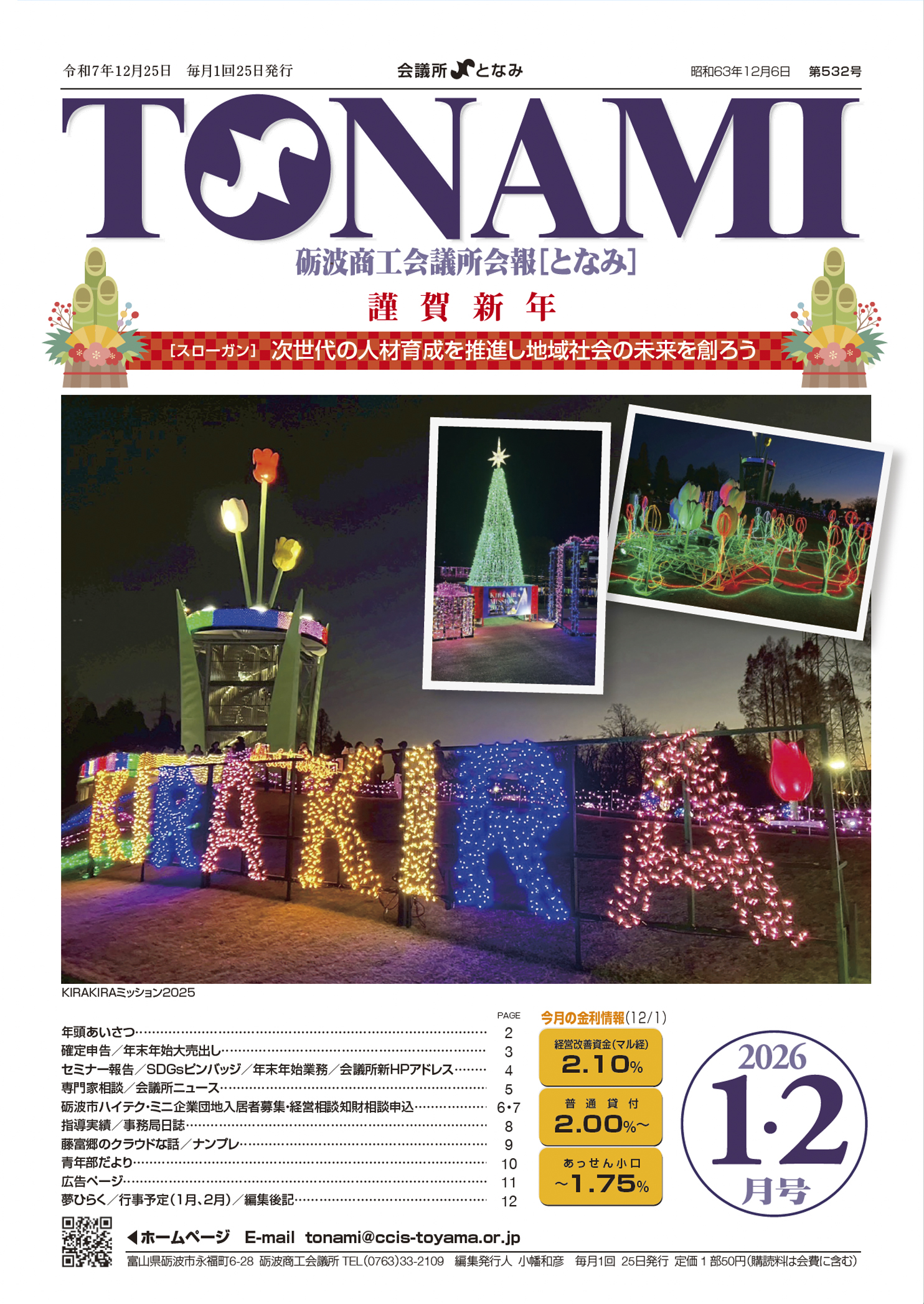 当所事業活動、地域の情報や経営に関する情報など、会員の皆様に役立つ情報を 掲載しております。会報となみは毎月25日(一部合併号あり)発行です。