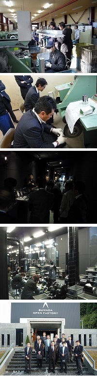 | 今年度の優良事業所視察事業は、庄川町事業所協会と合同で11月21日、新潟県燕三条を訪れました。 この地域は、古くから、金属加工がさかんで、「研磨のまち」「刃物のまち」「金属食器のまち」等々、ものづくりの集積地として発展してきた地域です。 「燕市磨き屋一番館」 金属加工産業としては日本一である燕市と三条市。1970年には中小零細で1700社あった燕市内の研磨業者は2010年には400社(1000人)まで減少しており、個人経営が多く高齢化が進むなか、金属研磨技術を次世代に継承するために設立された施設です。燕研磨振興協同組合が運営しています。伺った日も、プロの磨き屋を目指す若者たちが修行をしていました。この施設では見学者の磨き体験も実施されており、当協会員もビアカップを真剣な表情で磨き、その出来栄えに自己満足(?)していました。 「燕市産業史料館」 燕市の金属産業の起源や歴史、伝統技術を紹介する博物館。江戸時代の和釘製造が燕のものづくりの起源で、その後キセル、ヤスリ、銅器と金属加工の歴史は続いていきます。清水次郎長や徳川綱吉が愛用したキセル、金工作家の作品、日本の生産量の90%を占める金属洋食器のスプーンやナイフの展示などを、特徴的な語り口の女性学芸員が説明してくれました。 今回の見学会をお世話いただいた「燕三条地場産業振興センター」に立ち寄り、特産品、お土産などの買物をし、三条市にある諏訪田製作所を訪問。 「諏訪田製作所」 黒を企業のイメージカラーとする諏訪田製作所。工場の外壁から内装、生産で使用する機械設備そして作業服までもまでも黒で統一される徹底ぶりです。鍛冶屋さんは黒い空間で灼熱する鋼の色を見て、その温度を判断したそうです。 「オープンファクトリー」=「開かれた工場」というコンセプトのこの工場は、ほとんどの工程に見学通路が設けられており、ふらっと立ち寄った人でも見学が出きるそうです。原材料の鍛えから商品仕上げまで自社で行い、全てがハンドメイドの過程を見ていただこうという思い、作り上げる製品に対する職人の純粋な気持ちを伝えたいという思いがあります。より多くの方に見ていただく為に土曜日を出勤とし、月曜日を休日にしているそうです。また通路には、各工程をライブで映し出すモニタも設置されていました。 ペンチのような形状の「爪切り」が主力製品で、工程を経る毎に右の刃と左の刃を合わせたその隙間がどんどん縮まっていき、製品として仕上がる時には隙間が肉眼では見えないほどになっていました。最終仕上げを担当している職人さんを見ましたが、ヤスリで2、3度磨いては目でチェック、何度も何度もその作業を繰り返しておられました。それこそ納得のいくまで続けられるのだと思います。そうして作られた爪切りで、爪を切ってみましたが、切るときの重厚感、切れ味、爪の切り跡が、普段使っている爪切りとは全く違うものがありました。 手間をかけて製造されているだけあって、価格的にも高級な爪切りですが、美容院やネイルサロン等プロのお店でよく使われているそうです。技術、思いに真摯に取組み「爪切り」という分野でのブランド化を実現している企業だと感じました。 |
