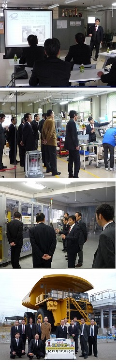 | 庄川町事業所協会と合同で12月10日、優良事業所視察事業として、小松市・ライオンパワー、こまつの杜を訪れました。 「ライオンパワー㈱」 各種FAロボットシステム、計測システム、エレクトロニクス機器、医療機器、プリント基盤、制御盤、プログラム開発等々、幅広いものづくりに対応するライオンパワー。強い会社を作りたいとの想いから名づけられた社名で、当初は「何をする会社?」と取引先から興味を示され、飛び込み営業時に役立ったそうです。 従業員は119名で約半数が女性です。女性は多くが製造現場に所属しており、設計開発部門が男性中心という社内体制になっています。実際に見せていただいた工場では、各顧客毎に作る製品の分野が違うためそれに応じた現場になっており、女性たちがこつこつと楽しそうに部品製作等の作業をされていました。現場を統括するのも女性であらためて女性のパワーを感じました。 技術開発に注力しておられ、研究開発室を設置し毎年数千万円を投入し、新技術・先端技術開発に日々研鑽しておられるそうです。 3つの品質活動として、ISOの理解・実践、LP100活動、未来のハーモニー活動を行い、その活動を通して人材育成も図っておられます。その中から気づいたことが「モラルの向上が生産性・品質の向上につながる」ということで、人のため社会のために貢献するという共通目標を持ちチームとして活動するという意識が、生産性、品質の向上を導くということで、大変共感できると思います。 高瀬社長に、会社の説明から現場の案内まで対応していただきましたが、社長はJリーグのプロコーチの経験をお持ちであり、社員とコミュニケーションを密に図りながら信頼関係を築いておられました。個々を磨きチームとしての企業文化を高める人材育成方針は大変参考になりました。 「こまつの杜」 JR小松駅の東側、コマツ小松工場跡地に2011年5月に造成された「こまつの杜」。コマツグループのグローバルな人材育成の拠点であり、地域社会と一緒になり将来を担う子供たちを育む場所として設置されたものです。 107,380㎡もの広大な敷地に、研修施設である「コマツウェイ総合研修センター」、子供たちが産業機械や建設機械の技術を学習できる「わくわくコマツ館」、加賀地方の自然とふれ合える「げんき里山」、世界最大級ダンプトラック「コマツ930E」の展示などの施設があります。 今回は、930Eに試乗させてもらいました。最大積載量297トン、車体重量202トン、全長15.32m、全副8.69m、全高7.32mの巨大なダンプトラックは、タイヤの直径だけでも3.83mもあるそうです。間近で見るとその大きさに圧倒されました。鉱山での土砂を運び出すことがメインで全世界で千台以上が稼動しているそうです。 |