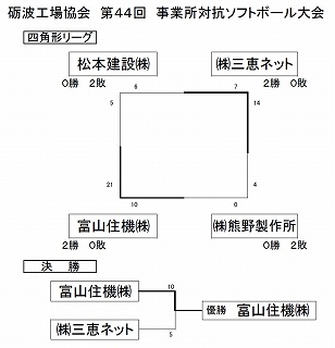 | 第44回事業所対抗ソフトボール大会 富山住機 4連覇達成 | (2018/10/14) | ||||